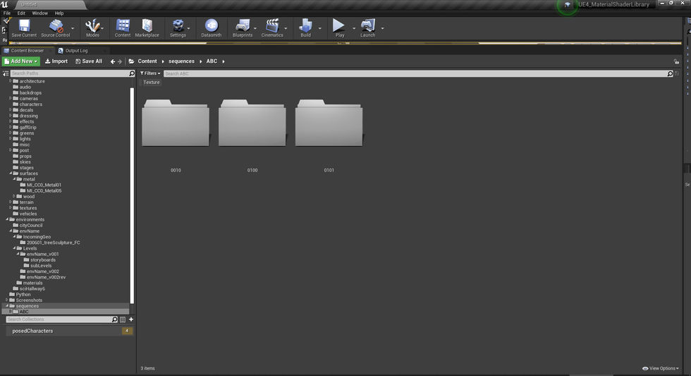 An animations folder: contains any animation assets sublevels of lighting/characters/geometry for the sequencer, and any sub-sequencer assets.